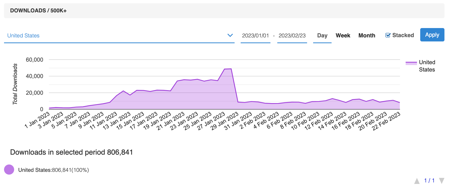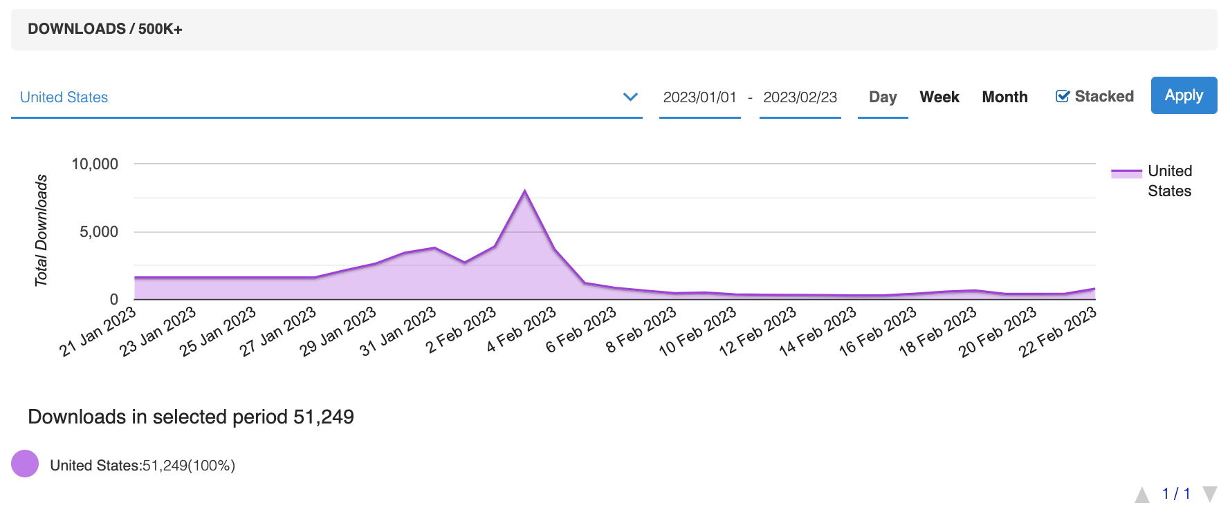 - 2023 U.S. Downloads: 51,249 (Open Chat GBT was released just one month ago.)