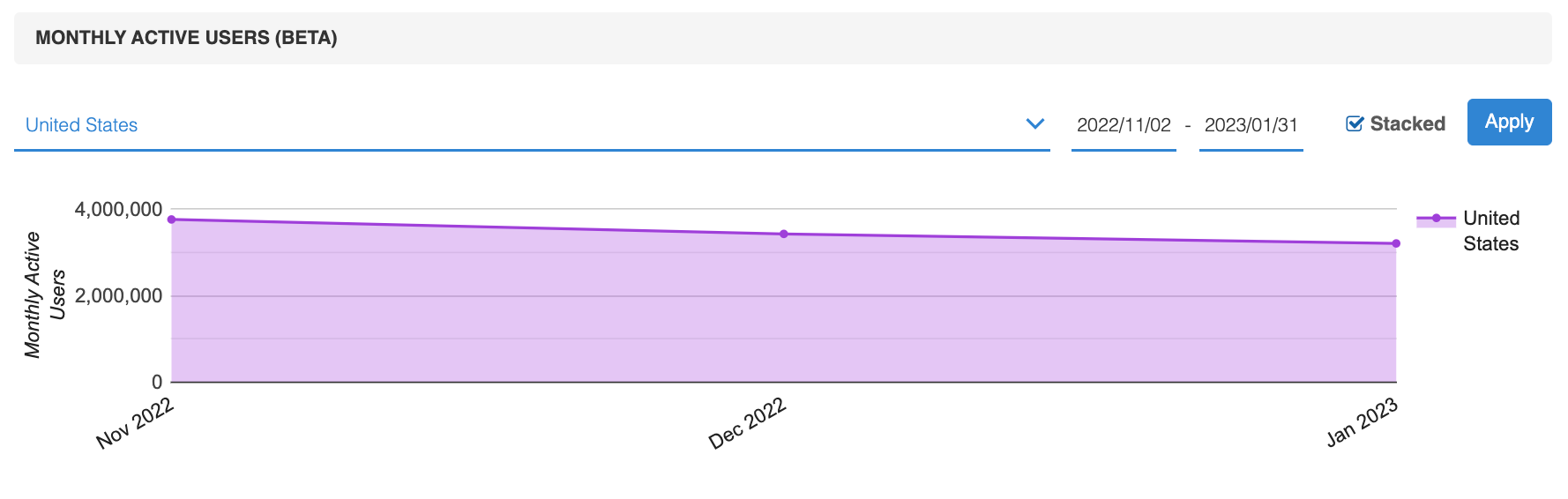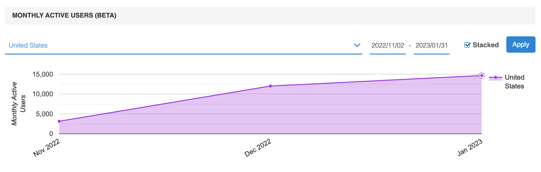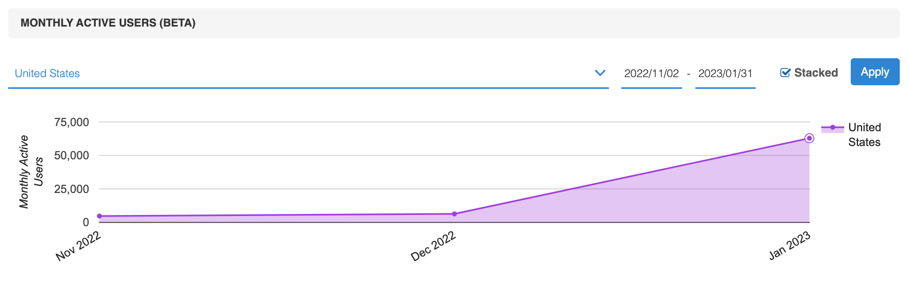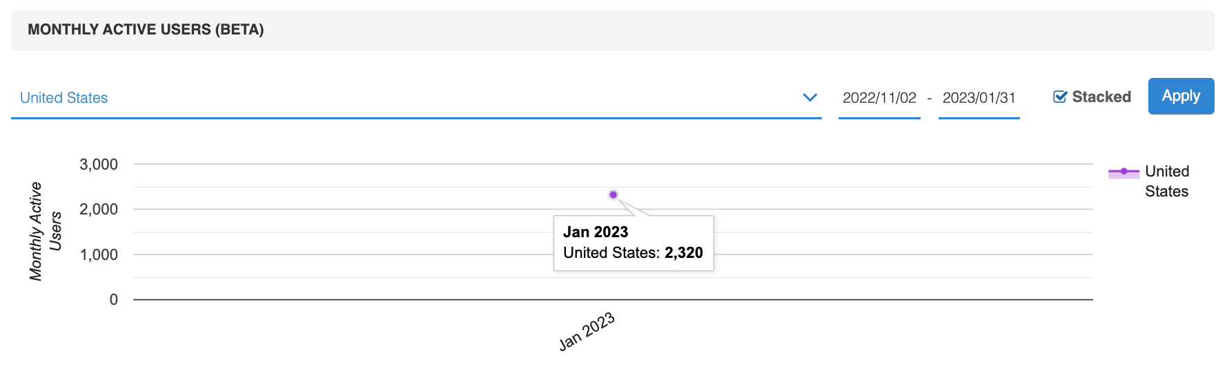 - U.S. Monthly Active Users: 2,320 (After one month.)