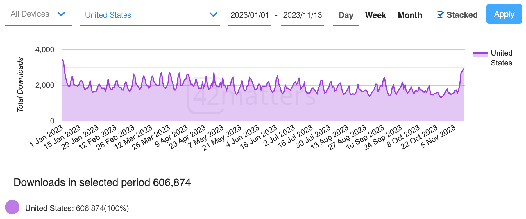 iOS Downloads: October 13, 2023 - November 12, 2023