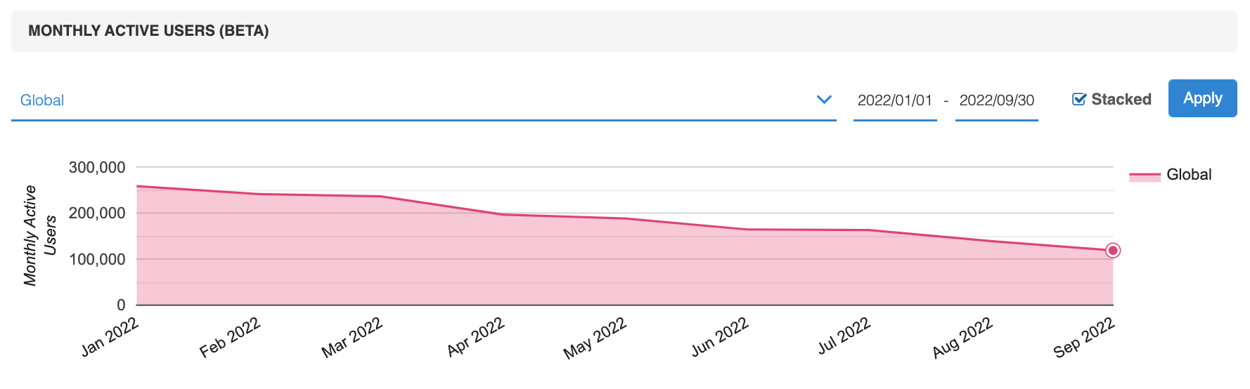 At the beginning of 2022, the app registered approximately 258,357 MAUs. By September 2022, VUZ notched just 118,780 MAUs, a 54% decrease from January.